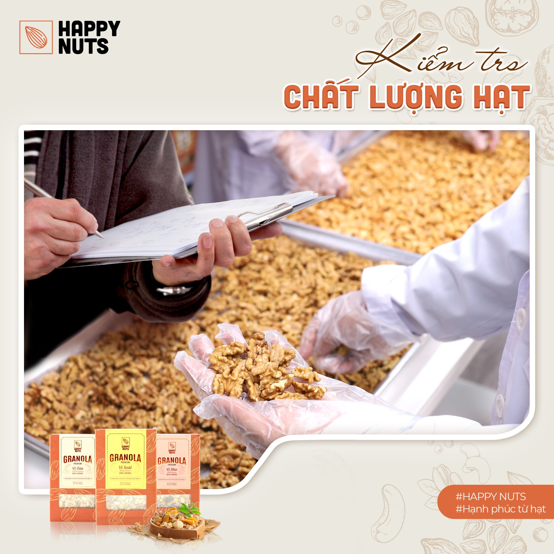 - Cam kết hàng chất lượng nhất, Happy Nuts kiểm tra thủ công từng nguyên liệu và chỉ chọn nguyên liệu tốt nhất để cho ra thành phẩm.