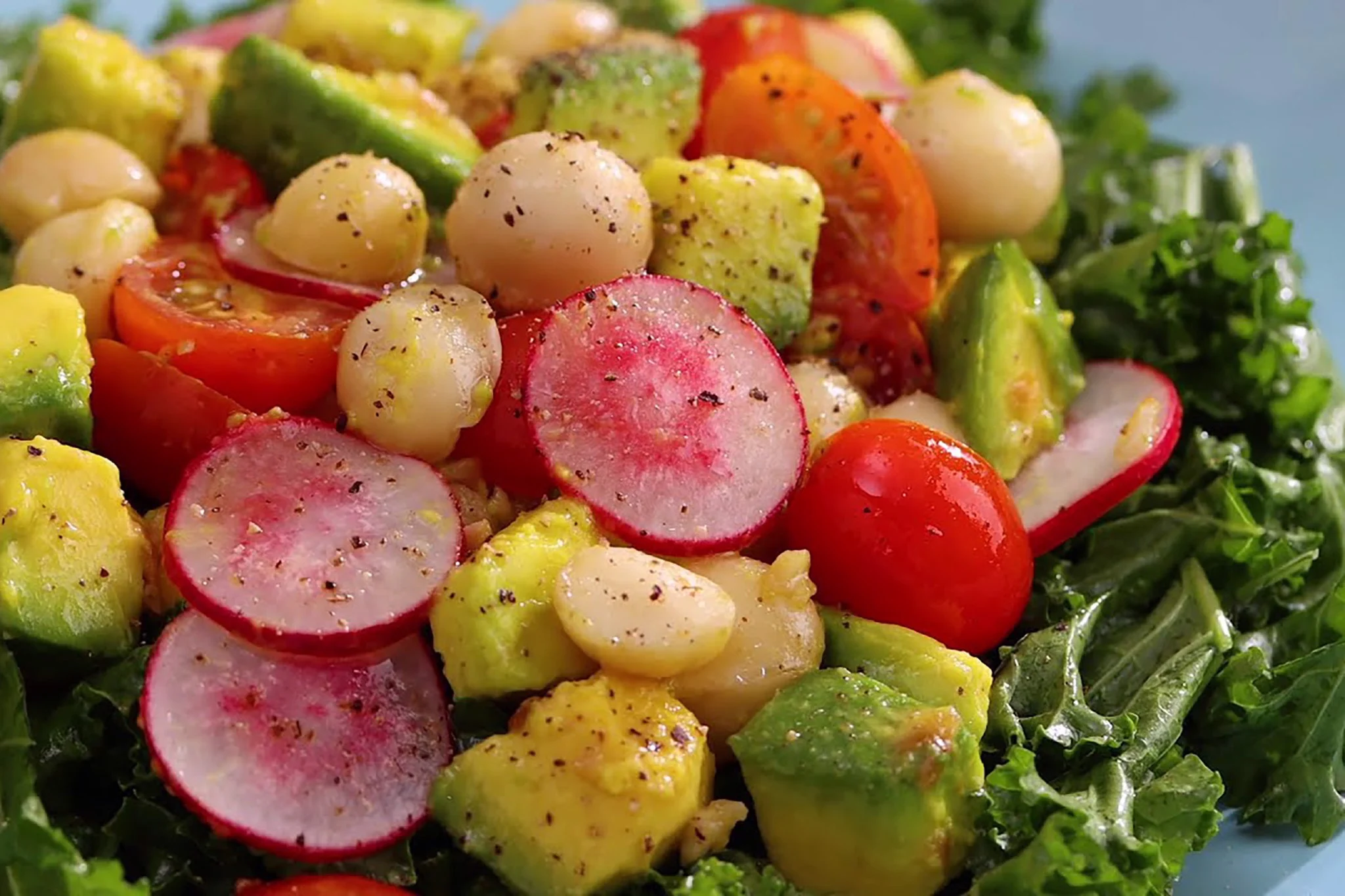 Món salad củ cải và hạt macca tươi ngon, lành mạnh