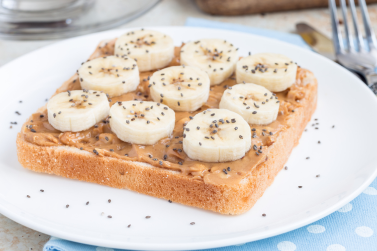 Bước 1: Trét bơ đậu phộng lên bề mặt bánh mì sandwich