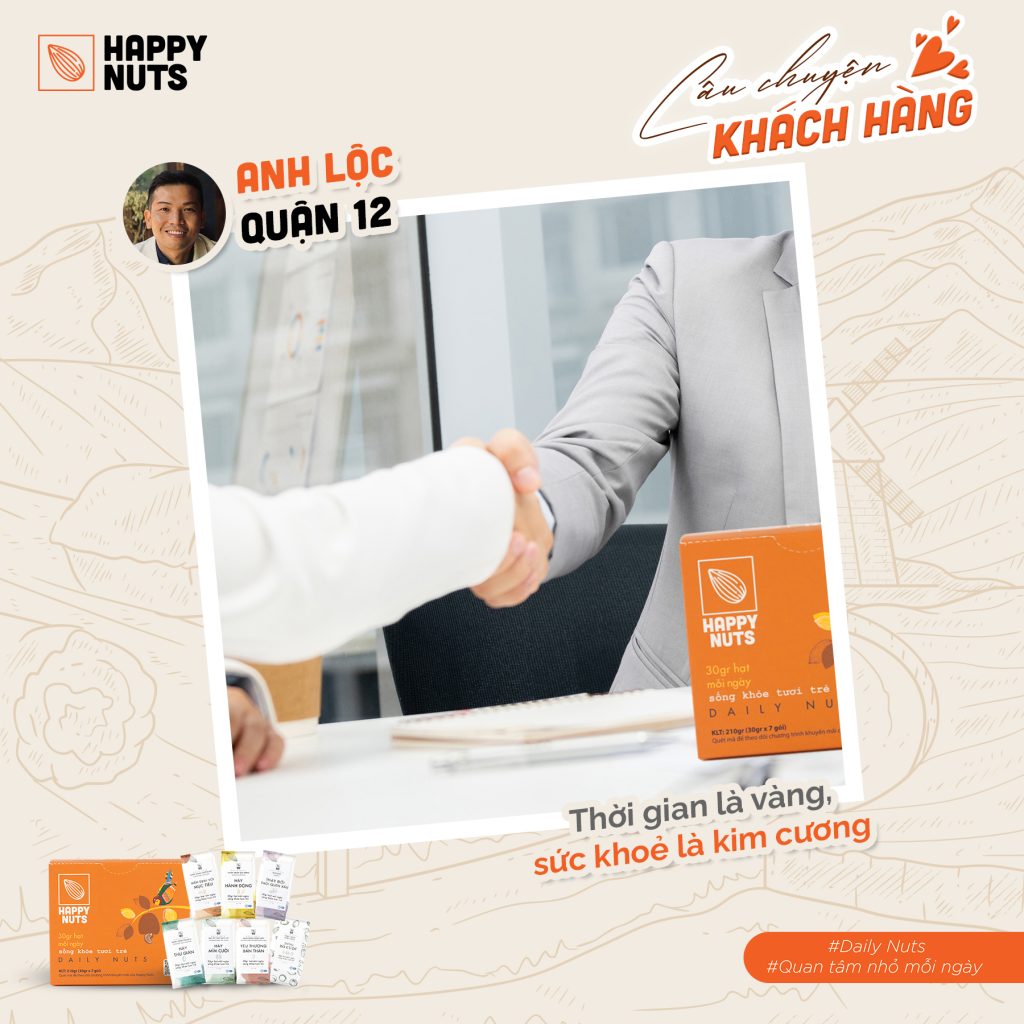 Với tiêu chí thời gian là vàng, sức khỏe là kim cương, anh Lộc (quận 12) đã tin dùng sản phẩm của Happy Nuts để chăm sóc sức khỏe cho bản thân và gia đình
