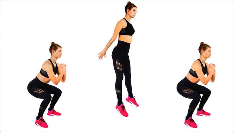 Nhảy Squats cũng là một trong các bài tập đốt mỡ toàn thân đơn giản, dễ thực hiện tại nhà vì nó đòi hỏi rất ít không gian và thời gian, bài tập sẽ giúp bạn xây dựng sức mạnh cơ chân.