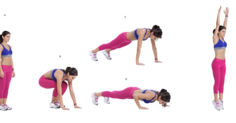 Bước 3: Từ đầu tới gót chân tạo thành một đường thẳng, cố định hai tay và hai chân nhảy về phía hai tay tạo thành tư thế ngồi xổm. Sau đó, bật nhảy càng cao càng tốt và đưa hai tay lên cao hơn đầu. Khi tiếp đất, quay lại tư thế Squat lúc đầu.