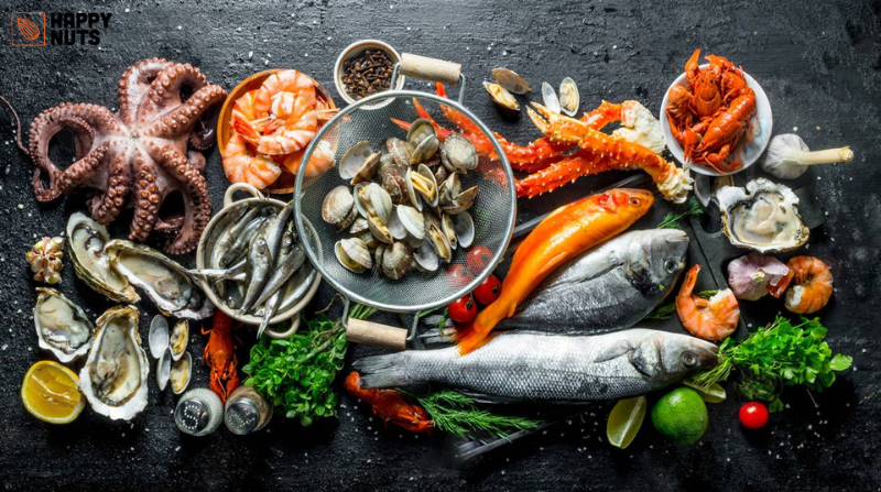 Hải sản (như cá trích, cá ngừ, động vật có vỏ nghêu, sò, ốc,…) chứa hàm lượng dinh dưỡng cao, bao gồm cả chất purin.