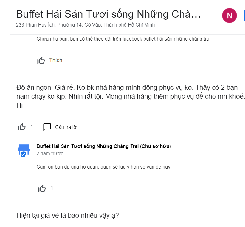 2. Xem đánh giá của khách hàng trên fanpage quán buffet hoặc các trang review
