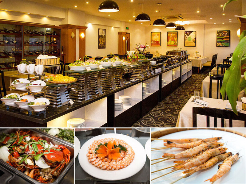 Nhà hàng phục vụ cả buffet sáng, trưa, tuy nhiên chỉ có buffet tối mới có hải sản.