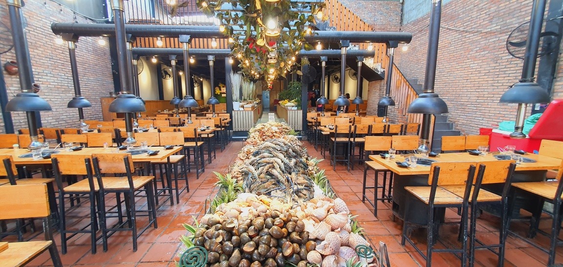 Khách hàng có thể tự do lựa chọn vô vàn hải sản như cua, tôm sú, vẹm, hàu, các món ốc dân dã (ốc mỡ xào me, ốc len xào dừa, sò huyết cháy tỏi,…) sẽ được chế biến theo khẩu vị của khách hàng