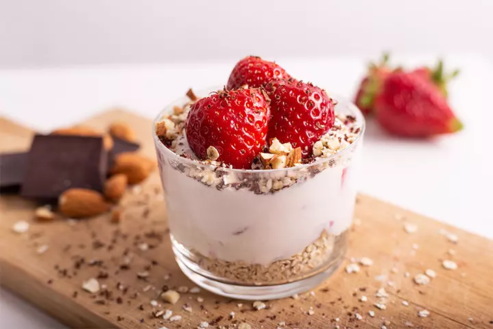 Vị béo ngậy của hạnh nhân kết hợp vị chua ngọt của dâu tây tạo ra món ăn dặm thơm ngon cho bé