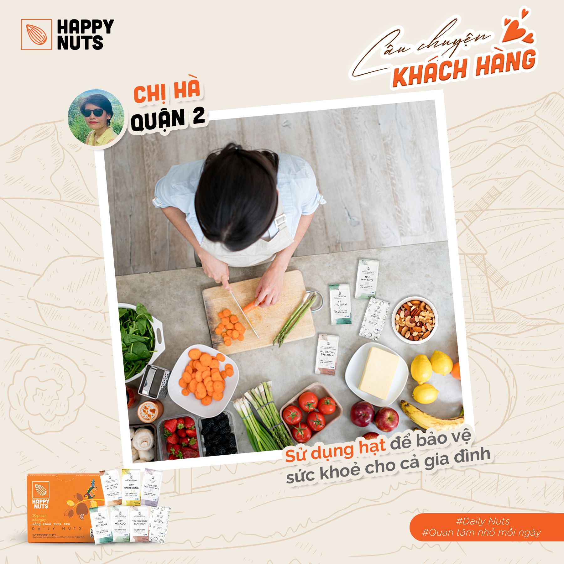 Chị Hà (quận 12) tin tưởng lựa chọn hạt Happy Nuts để bảo vệ sức khỏe cho cả gia đình