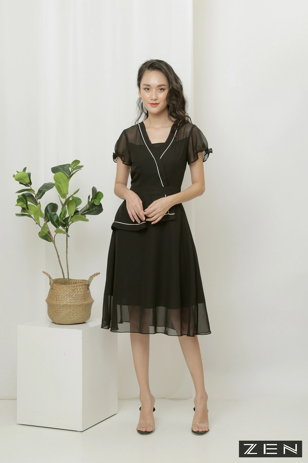 Nhờ phần chi tiết xoè ra hoặc cách điệu tại phần thân giữa, mã đầm này vừa tạo ra cảm giác thon gọn, vừa mang tới sự thanh lịch, đẳng cấp, xoá tan cảm giác đơn điệu tẻ nhạt cho người mặc.