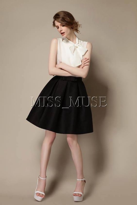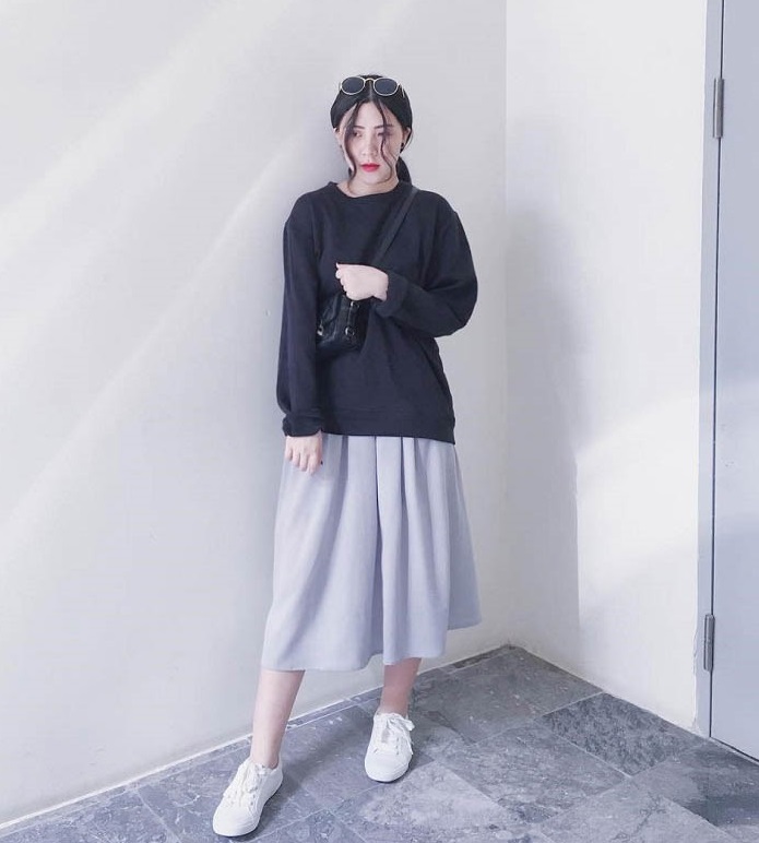 Chân váy thời trang xòe nhẹ nhàng, không ôm mà cũng không xòe quá nhiều sẽ che đi khuyết điểm bụng béo của chị em.