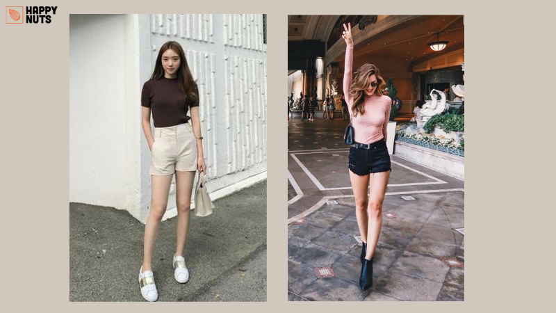 Để trông cao hơn thì bạn phải khoe chân nhiều hơn đúng không nào? Quần ngắn/ váy ngắn là những trang phục không thể thiếu được trong tủ đồ của các nàng đấy.
