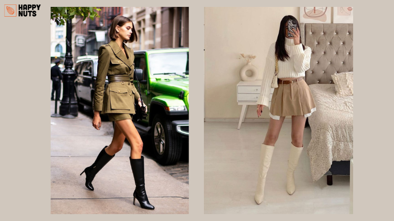 14. Váy ôm ngắn phối cùng giày cao cổ