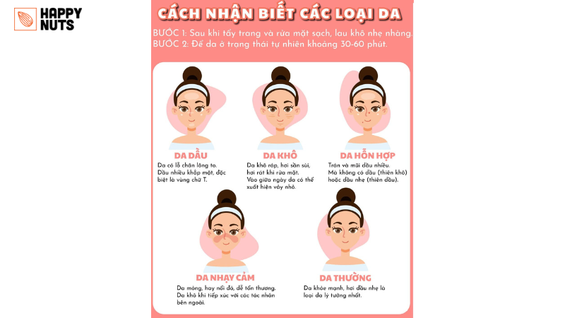 Để có thể áp dụng các bước dưỡng da một cách hiệu quả nhất thì nàng cần phải biết được làn da của mình thuộc loại nào để dễ dàng lựa chọn sản phẩm nhé.