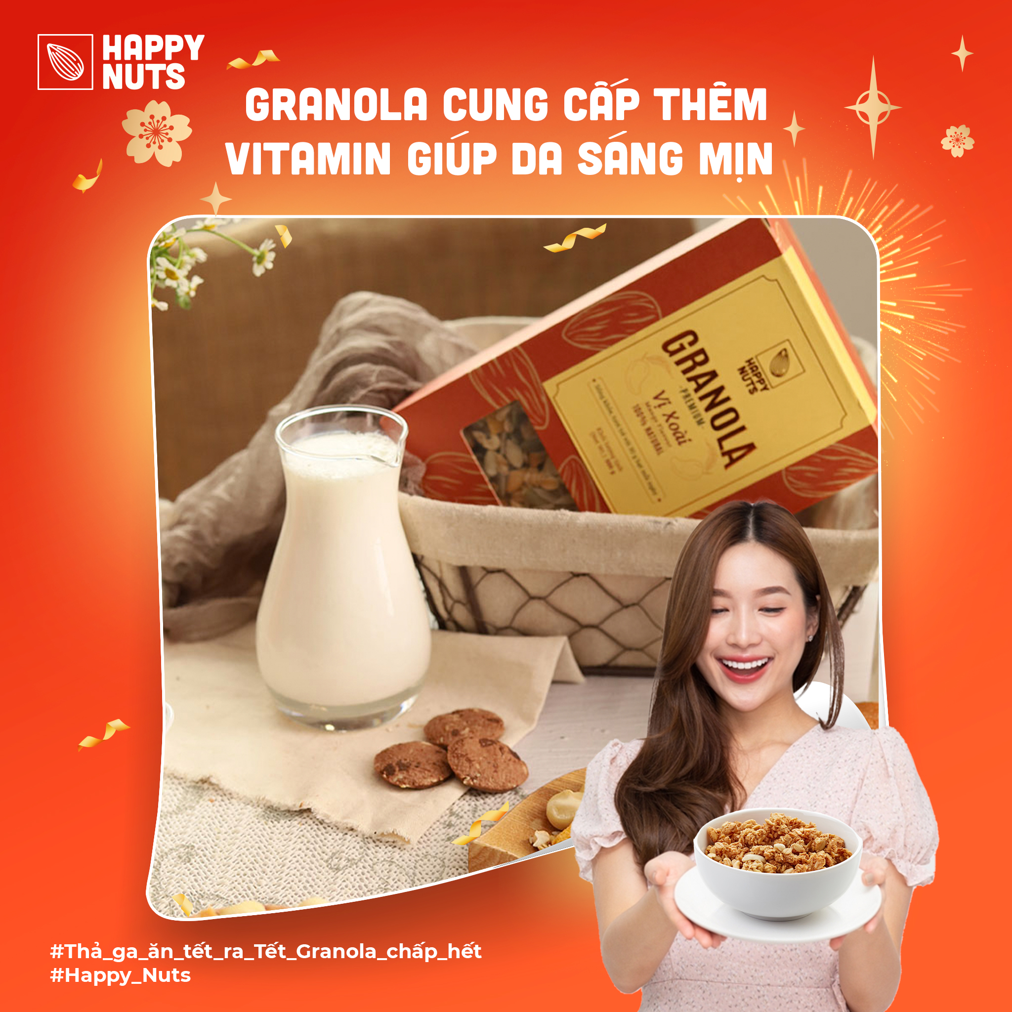 Các loại hạt dinh dưỡng và granola là lựa chọn cực kỳ hợp lý cho chị em khi muốn chăm sóc da và cơ thể từ bên trong.