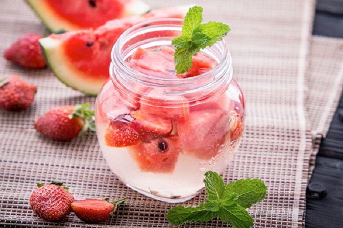 Món nước detox hoàn hảo với sự kết hợp của dưa hấu, bạc hà, dâu tây