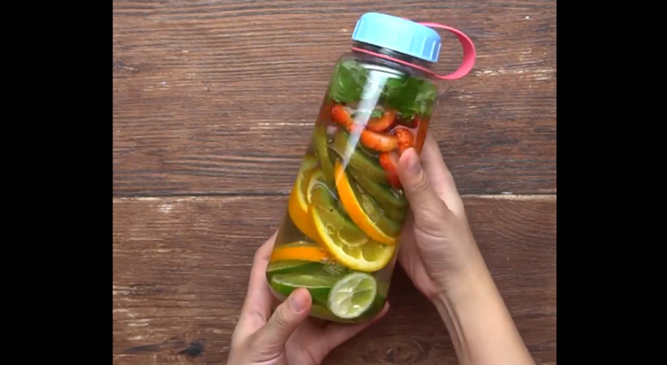 Bước 4: Đậy nắp và cho nước detox vào ngăn mát tủ lạnh để ngâm khoảng 3h là có thể dùng được.
