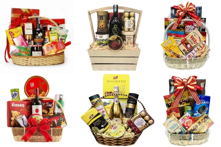 Một giỏ quà Tết nên được bày trí với khoảng từ 5 đến 7 món quà khác nhau. Dưới đây là một số sự kết hợp giỏ quà mà các bạn có thể tham khảo: