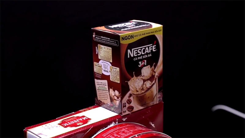 Bước 3 Chít keo phần trên hộp bánh để dán hộp cà phê Nescafe, sau đó đợi keo khô.
