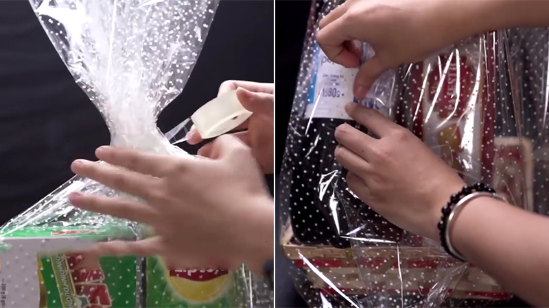 Trước tiên, bạn hãy bọc giỏ quà lại bằng màng co đã chuẩn bị từ trước. Trong quá trình đó, bạn hãy bật sẵn máy sấy để máy có nhiệt độ phù hợp có thể tác động được lên màng co. Sau khoảng 5 phút, bạn tiến hành sấy đều tay xung quanh màng bọc.
