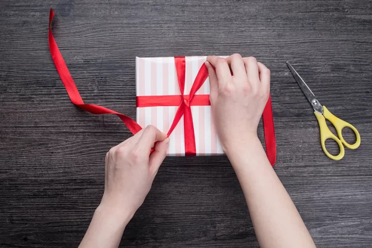 Bước hoàn thiện cuối cùng trong cách làm giỏ quà Tết 2024 đó chính là lựa chọn đồ trang trí, giấy gói và ruy băng là hai cái không thể thiếu.
