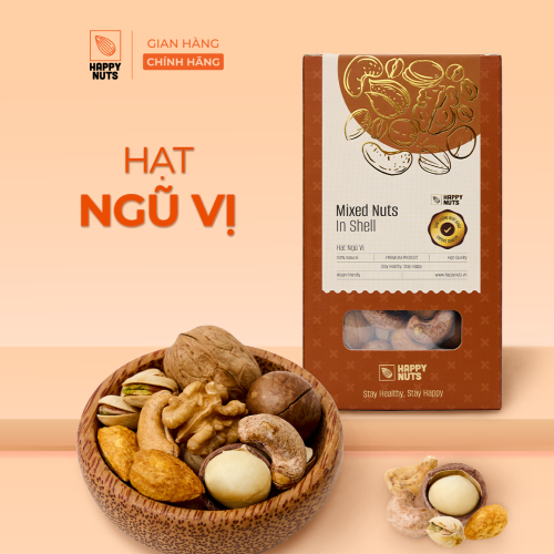 Thành phần: Hạt óc chó tách vỏ, hạnh nhân cappucino, hạt mix, hậnh nhân sầu riêng, nho khô, hạnh nhân rang mộc, hạnh nhân sữa dừa