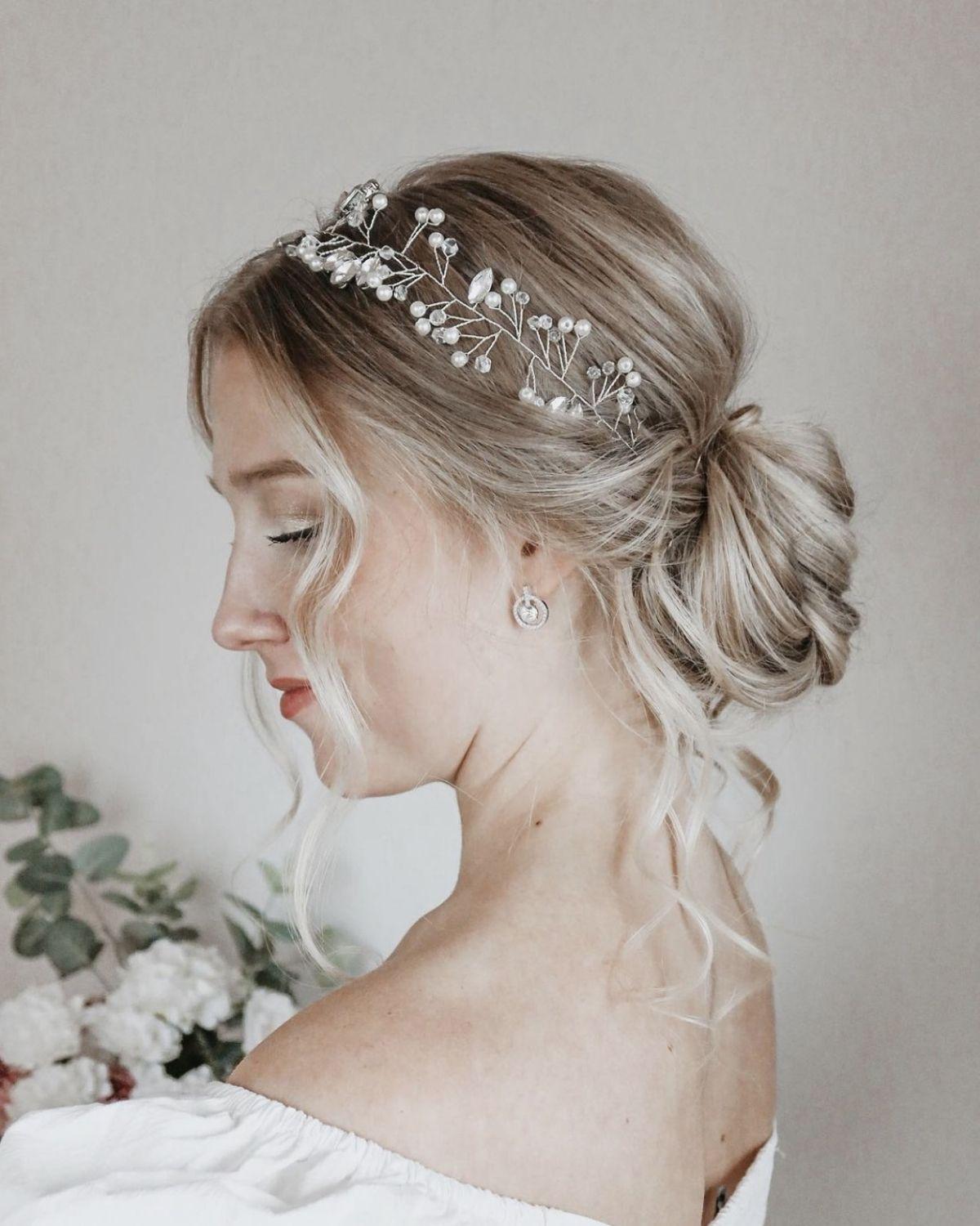 Một số kiểu tóc búi cho cô dâu đang thịnh hành hiện nay như búi bồng đính cườm, búi phong cách Hàn Quốc, búi kiểu Chignon cổ điển…