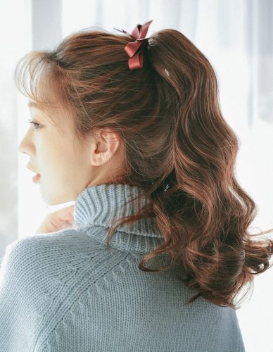 Ngoài dây buộc, một chiếc kẹp tóc đơn giản cũng sẽ giúp mái tóc buộc nửa thêm phần hiện đại, sành điệu. Cuối cùng, đừng quên kéo phồng những lọn tóc quanh đỉnh đầu.