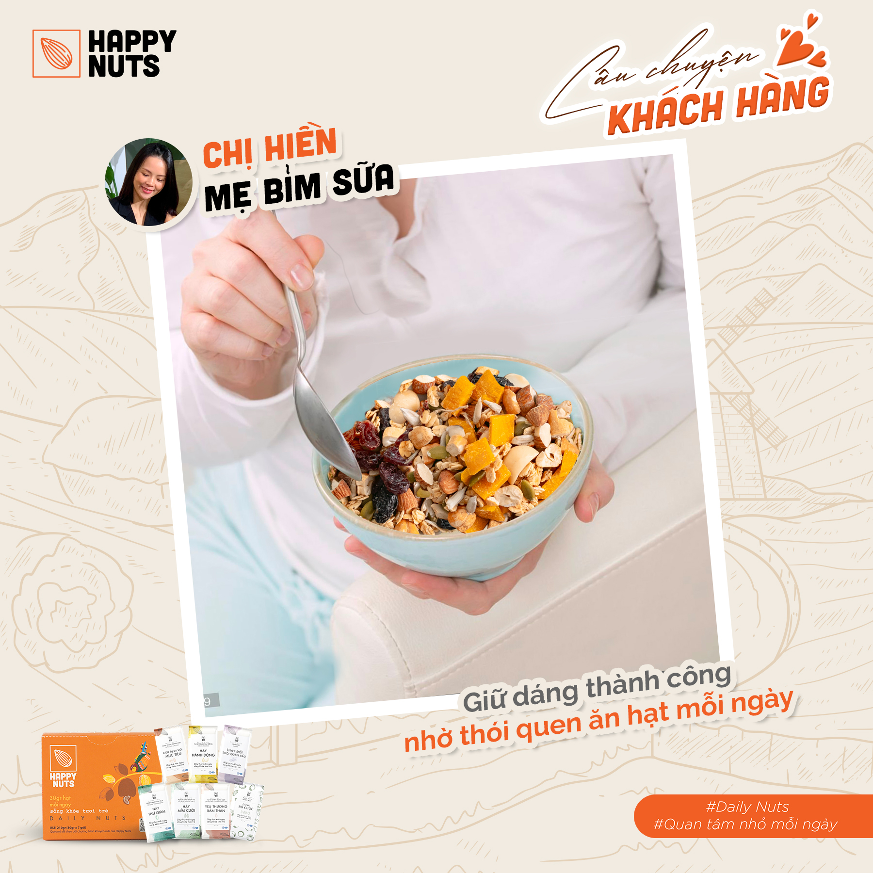 Hoặc sản phẩm Daily Nuts, 30gr hạt mỗi ngày, với 7 vị, thuận tiện cho khách hàng sử dụng.