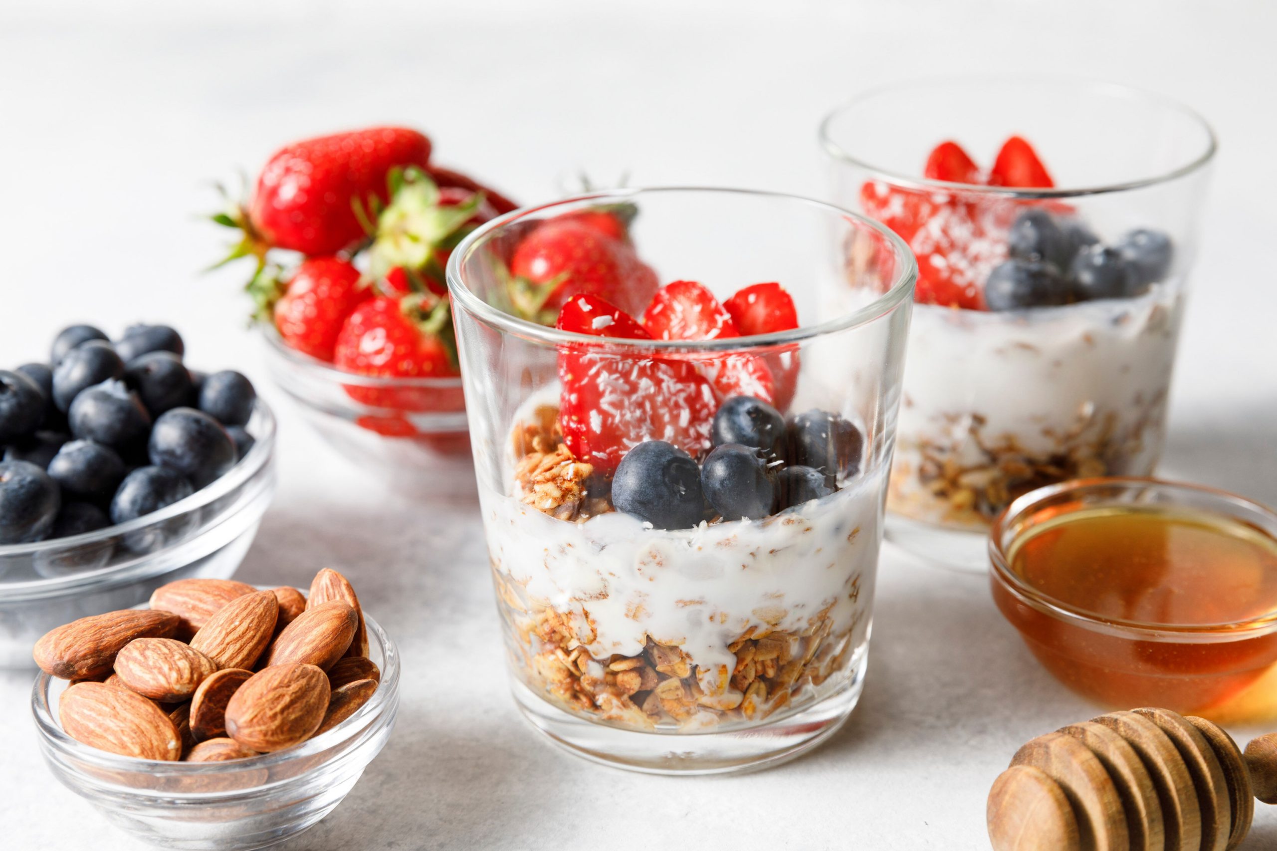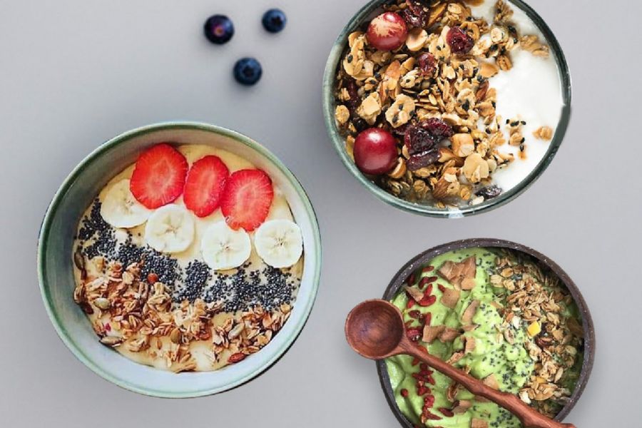 Bổ sung các loại trái cây, protein, rau,….cùng ngũ cốc granola không đường để cân bằng chế độ ăn uống