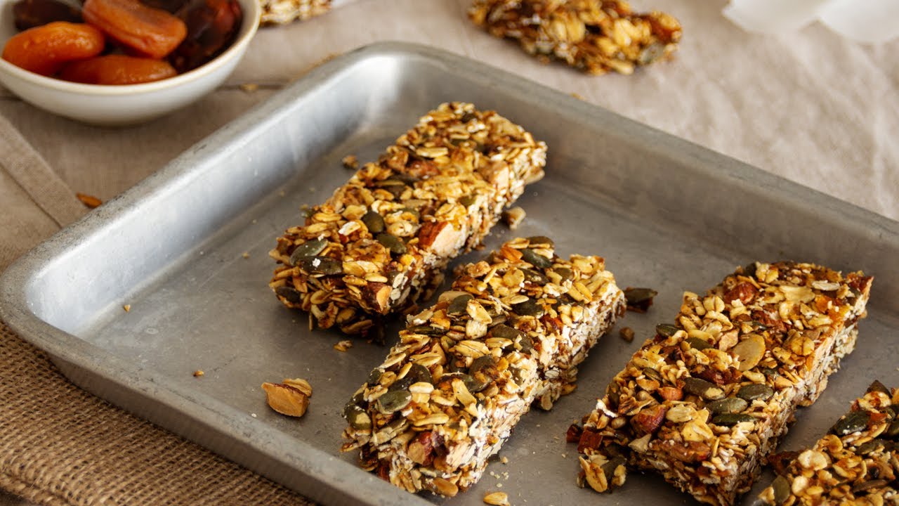 - Sau khi nướng xong, để thanh ngũ cốc nguội hoàn toàn trước khi cắt thành các miếng nhỏ.