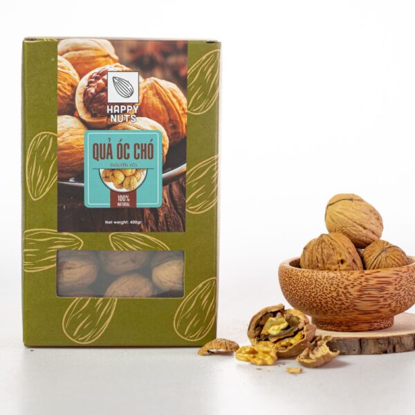 Hạt óc chó Happy Nuts được nhập khẩu từ Mỹ. Hạt óc chó là một trong những hạt dinh dưỡng có lợi cho sức khỏe. Đặc biệt quả óc chó vàng có hàm lượng omega–3 cao, có lợi cho trí não. Đây là hạt đã rất thịnh hành ở các nước Châu Âu, Mỹ; gần đây mới được nhập về và phổ biến ở Việt Nam.