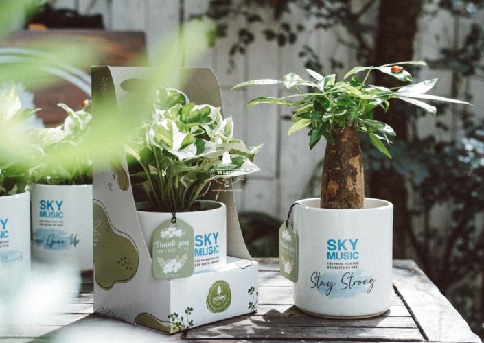 Tặng cây trồng trong hũ sứ, gốm với thiết kế đẹp mắt để tạo điểm nhấn trong không gian sống hoặc làm việc.