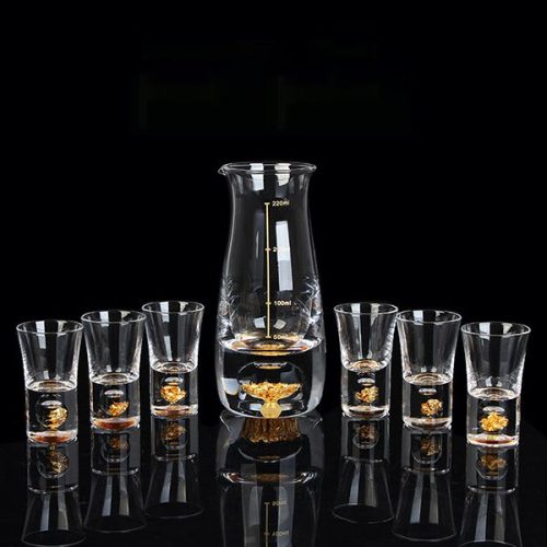 Bộ bình ly pha lê đúc vàng. Bộ ly uống nước pha lê với sự tinh giản trong thiết kế, tạo hình nhưng không làm mất đi sự sang trọng. Món quà này dùng làm quà tặng đối tác nhân dịp sinh nhật đều rất phù hợp.