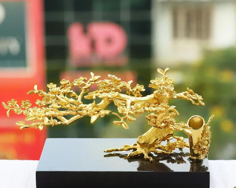 Chậu hoa mai dát vàng lại thêm ý nghĩa tài lộc, may mắn, thành công. Vậy nên đây sẽ là món quà Tết thật sự ý nghĩa dành tặng đối tác.