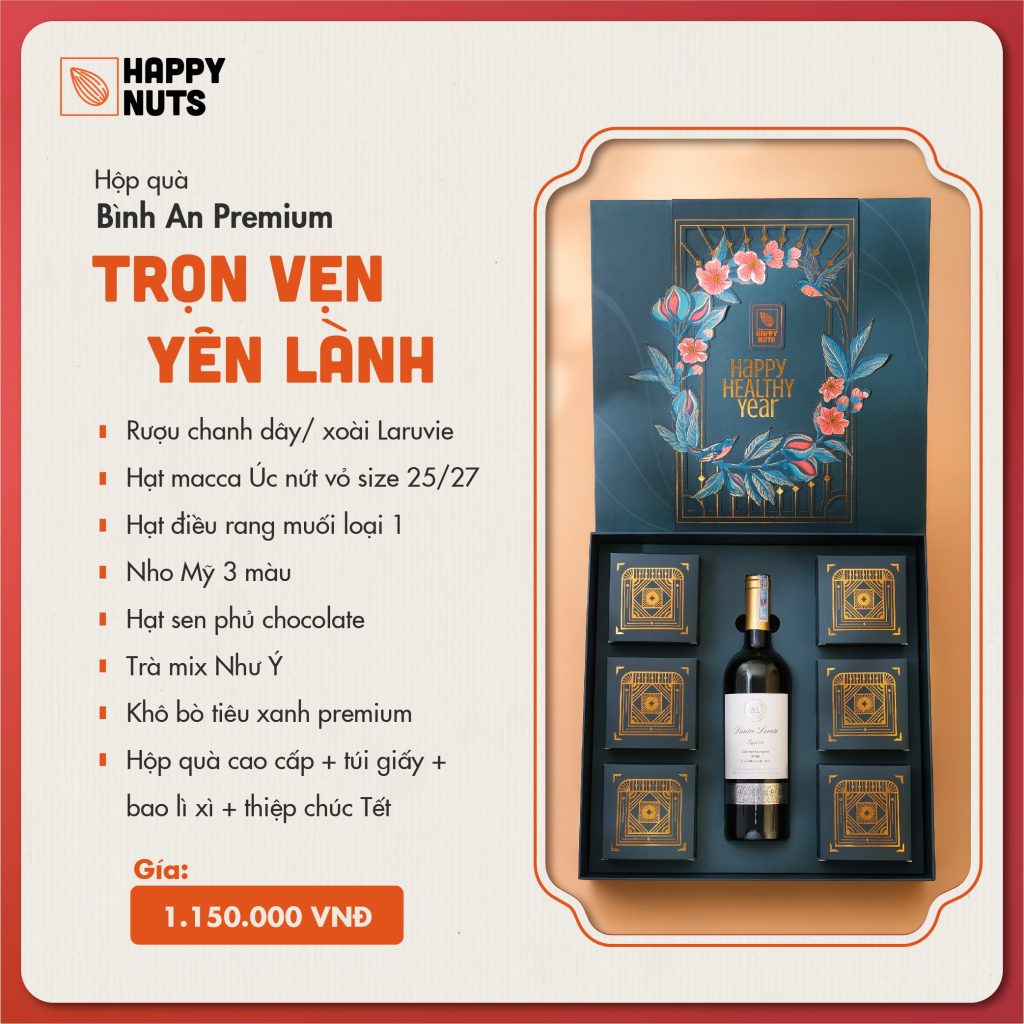 Bạn có thể tham khảo một số hộp quà Tết hạt dinh dưỡng cao cấp của Happy Nuts: