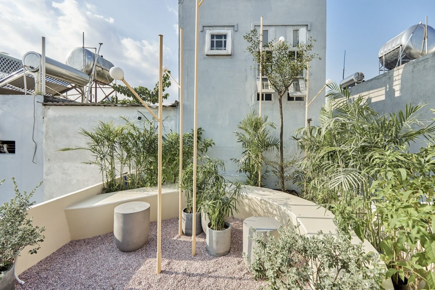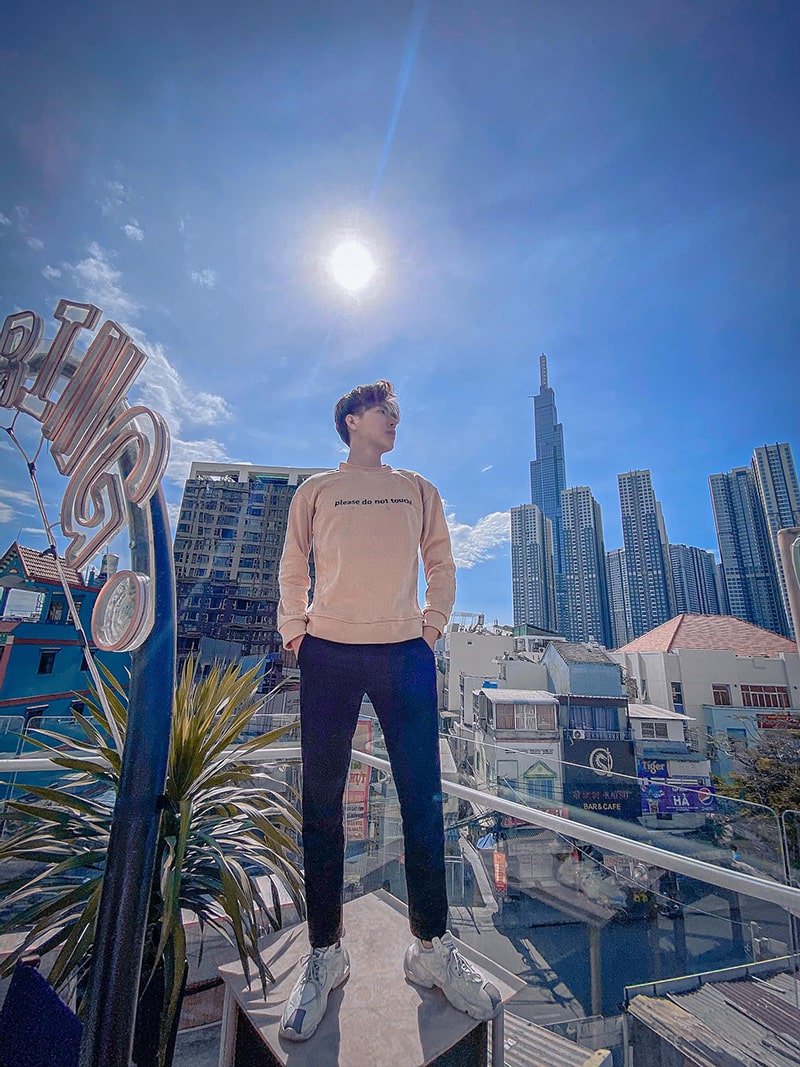 Đặc biệt sân thượng ở đây cực chill với chiếc thang độc nhất ở SaiGon lấy cảm hứng từ “nấc thang lên thiên đường “. Từ góc này bạn có thể ngắm phố, hoàng hôn , cả bầu trời biếc xanh.