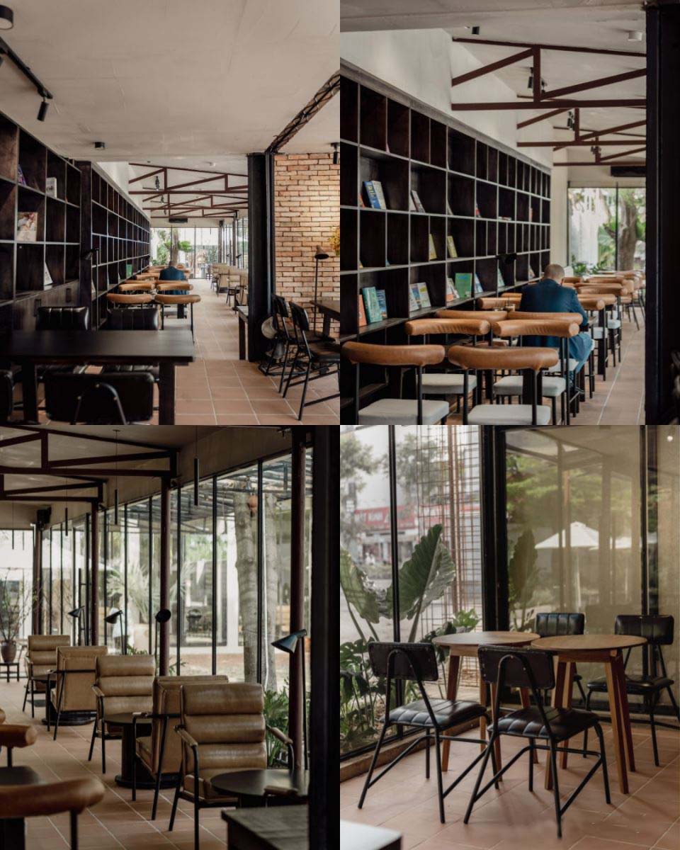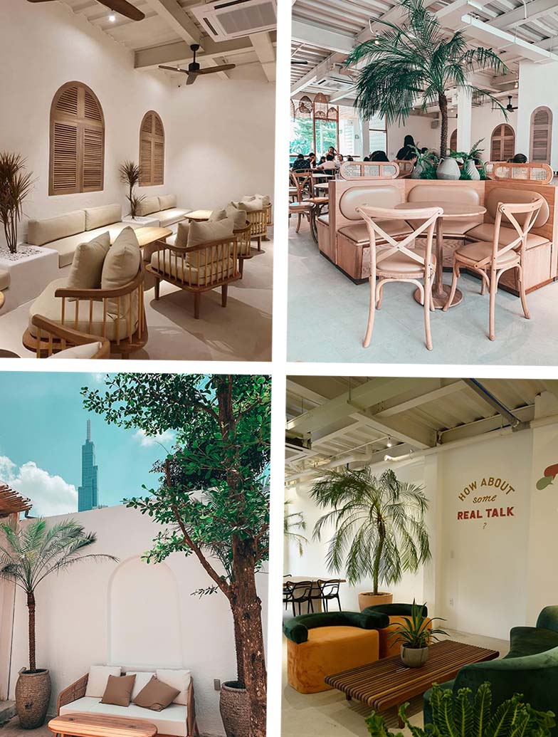 Nhờ kết cấu này mà quán trông cực kì rộng và thoáng. Quán đầu tư rất chỉn chu cho không gian, từ concept quán cho tới nội thất, tạo ra sự nhất quán, hài hoà.