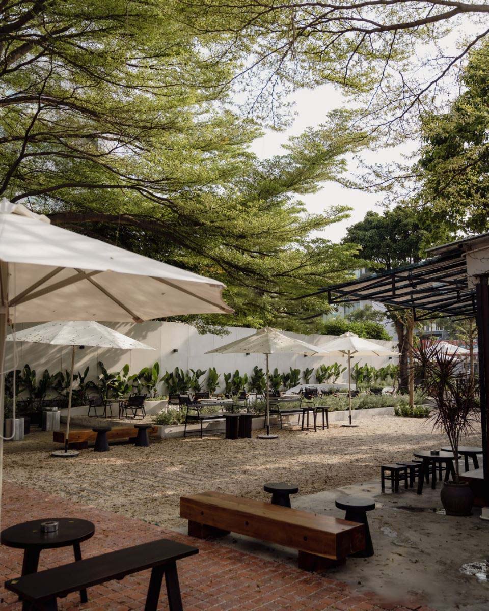 Ngoài trời, quán sử dụng hầu hết là bàn ghế thấp lót nệm nhằm tối ưu trải nghiệm thư giãn của khách hàng.