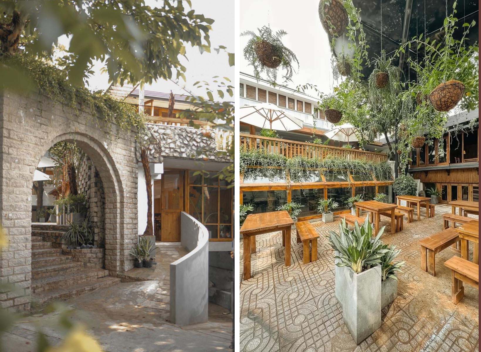 Ấn tượng với quầy pha chế với mái vòm xưa, khoảng sân rộng rãi thoáng mát với nhiều góc chụp ảnh đẹp