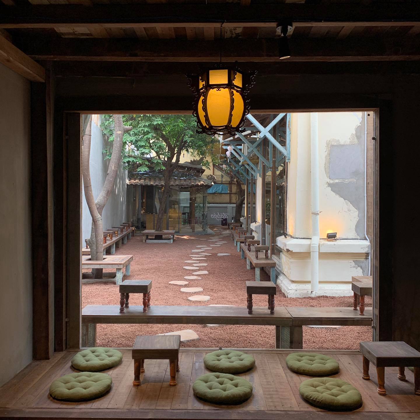 Vừa bước vào phần sân của quán, bạn sẽ cảm nhận ngay sự mát lành tách biệt với bên ngoài