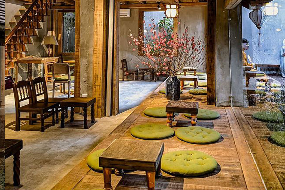 Không gian yên tĩnh, trầm lắng, được trang trí theo kiểu thanh thoát, nhẹ nhàng, pha chút tự nhiên