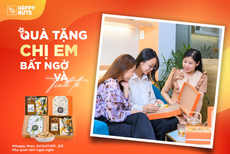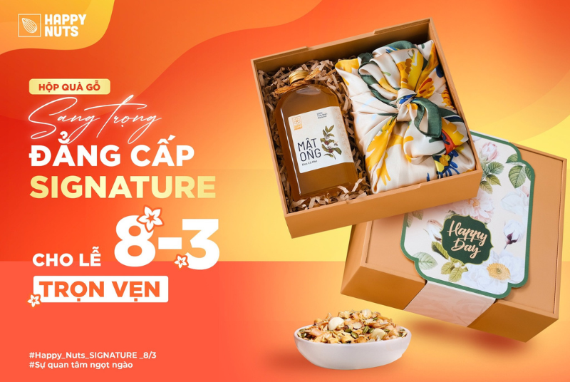 Hãy liên hệ cho Happy Nuts để được tư vấn giá từng set quà tặng 8/3 và các chương trình ưu đãi chỉ trong tháng này!