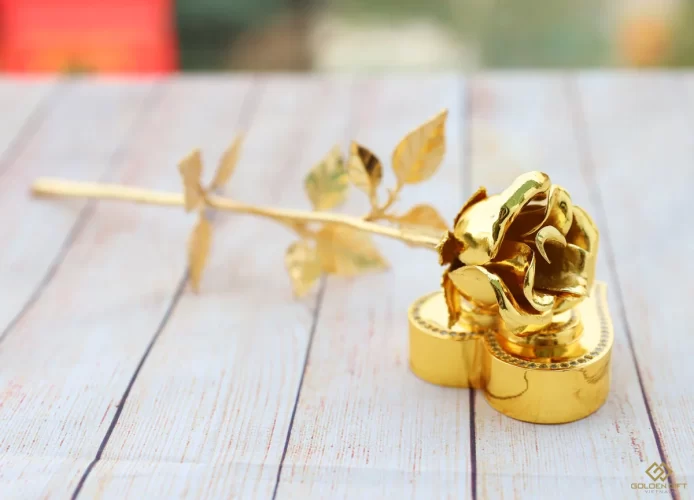 Không kém phần sang trọng mà lại tinh tế, độc đáo chính là những bông hồng dát vàng lấp lánh.