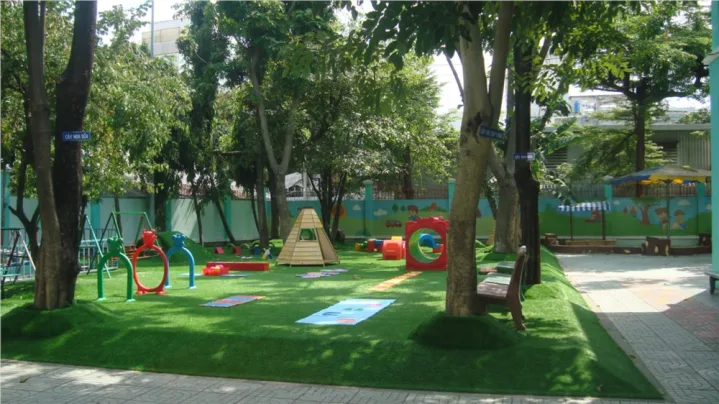Trường có khuôn viên rộng rãi, nhiều bóng mát thuộc trung tâm quận 3, vị trí rất thuận tiện và an toàn cho quý phụ huynh đưa đón trẻ mỗi ngày.