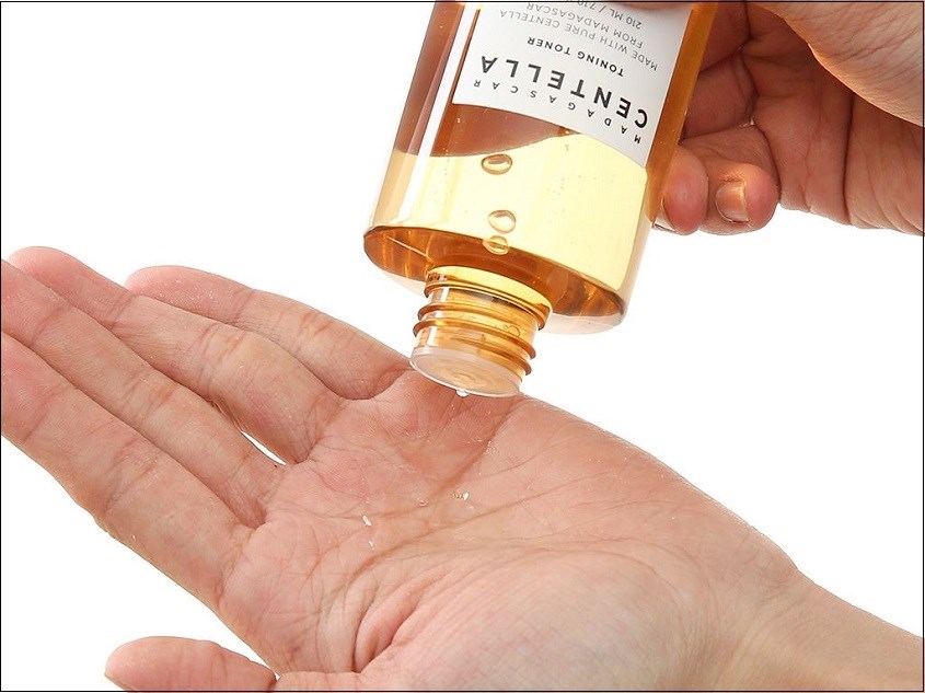 - Dùng tay: Cho một vài giọt toner vào lòng bàn tay và thoa đều lên da mặt, vỗ nhẹ để toner thẩm thấu vào da.